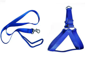 blue dog leash harness