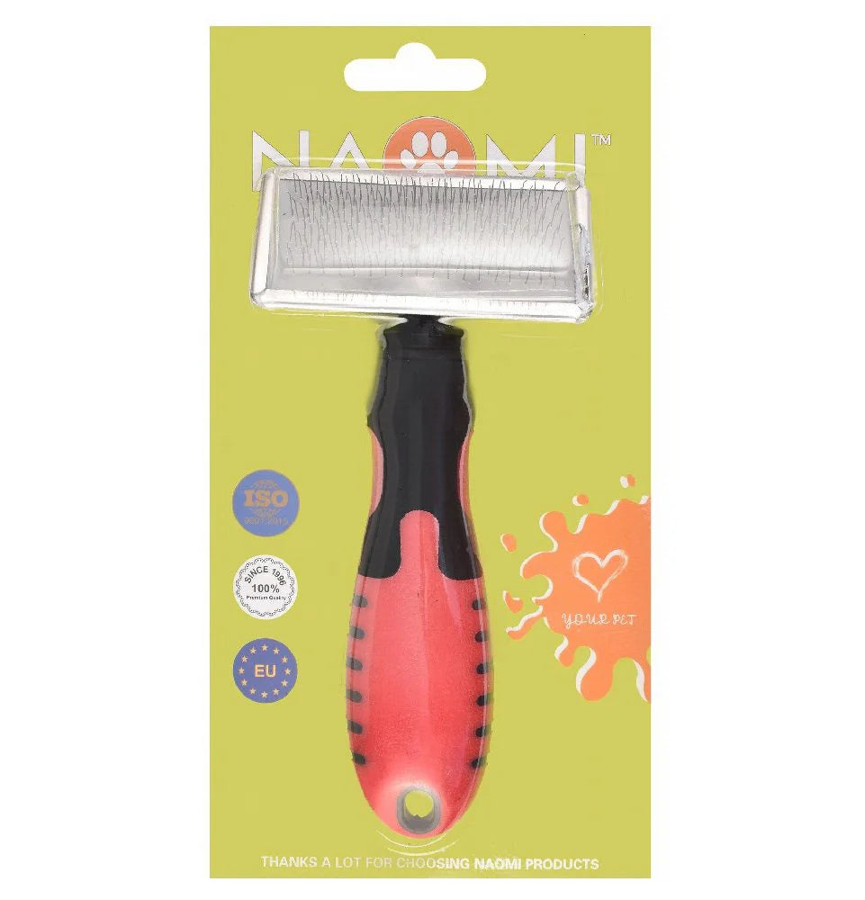NAOMI Pet Slicker Brush Grooming is made for professional groomers and show dogs, this premium dog slicker brush has a cushioned pad that retracts the soft and scratch free pins to grasp tangles and knots. Plus, designed with larger than standard pins to grasp hair and save time and energy during pet grooming.