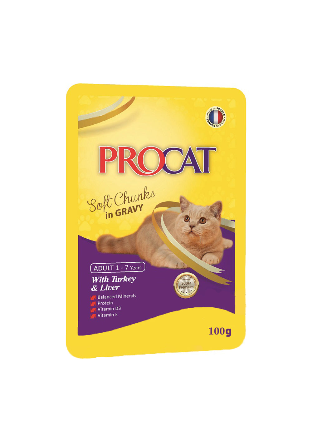 PROCAT Soft chunks in jelly with Turkey and liver 100 gm