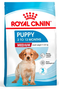 Growth is an essential stage in your puppy's life, it's the time of big changes and new discoveries. Because your puppy's immune system is still developing gradually, a specially tailored diet will help your puppy get all the nutrients it needs to grow healthy and strong. ROYAL CANIN Medium Puppy food is suitable for puppies between 2 and 12 months old that will have a medium-sized adult weight between 11kg to 25kg.